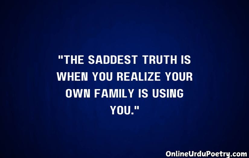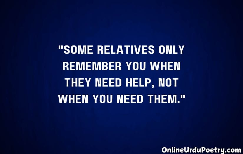 Family Matlabi Rishte Quotes explain the truth about the real relationships where selfishness and mei aka makaahara supersedes the feeling of the sincerity and love. These phrases depict the feelings that a person experiences when his own family members abandon him in time of crisis or only approach him when they are in need. PHRASE: Not every relationship is a fairytale—sometimes, the people that are closest hurt the most.
